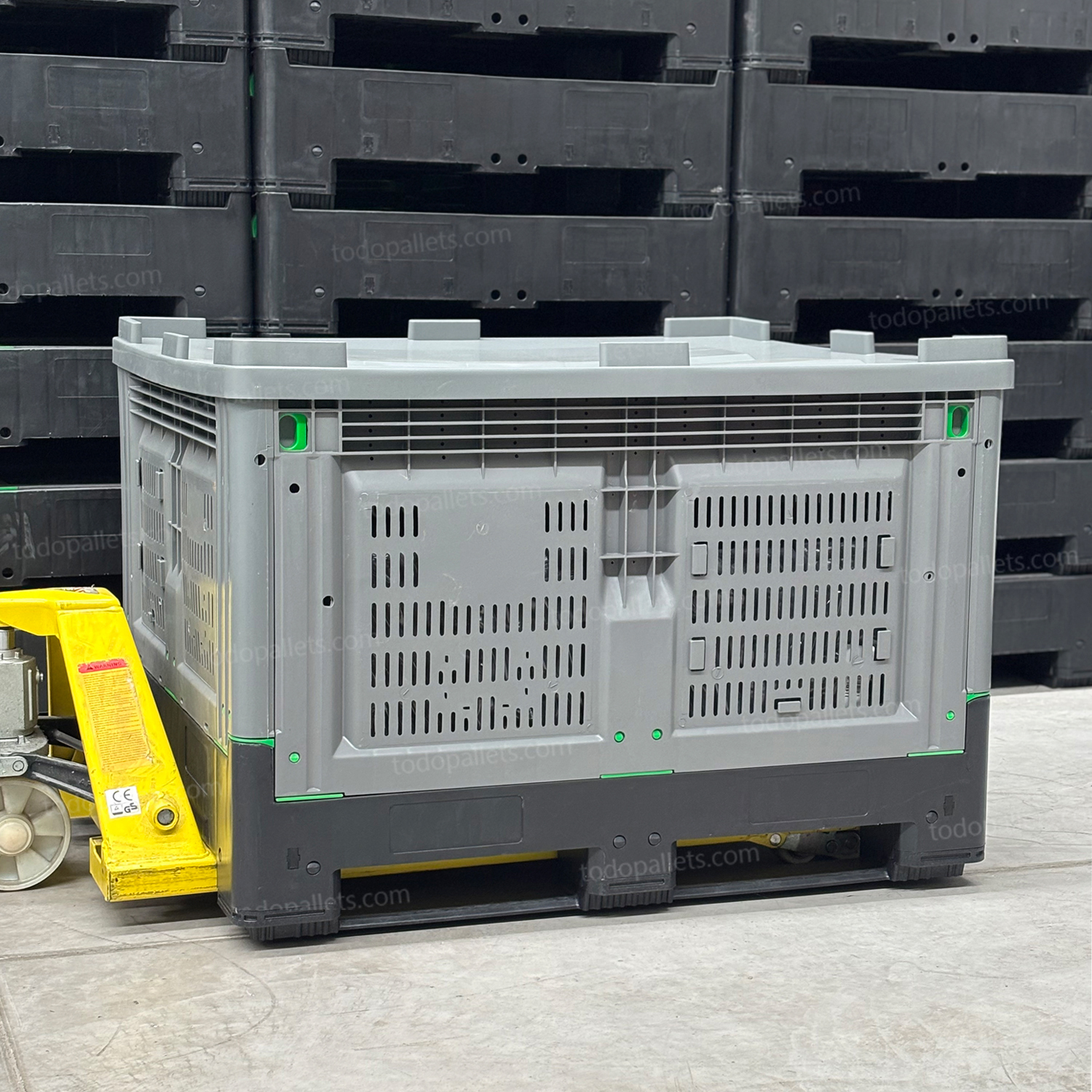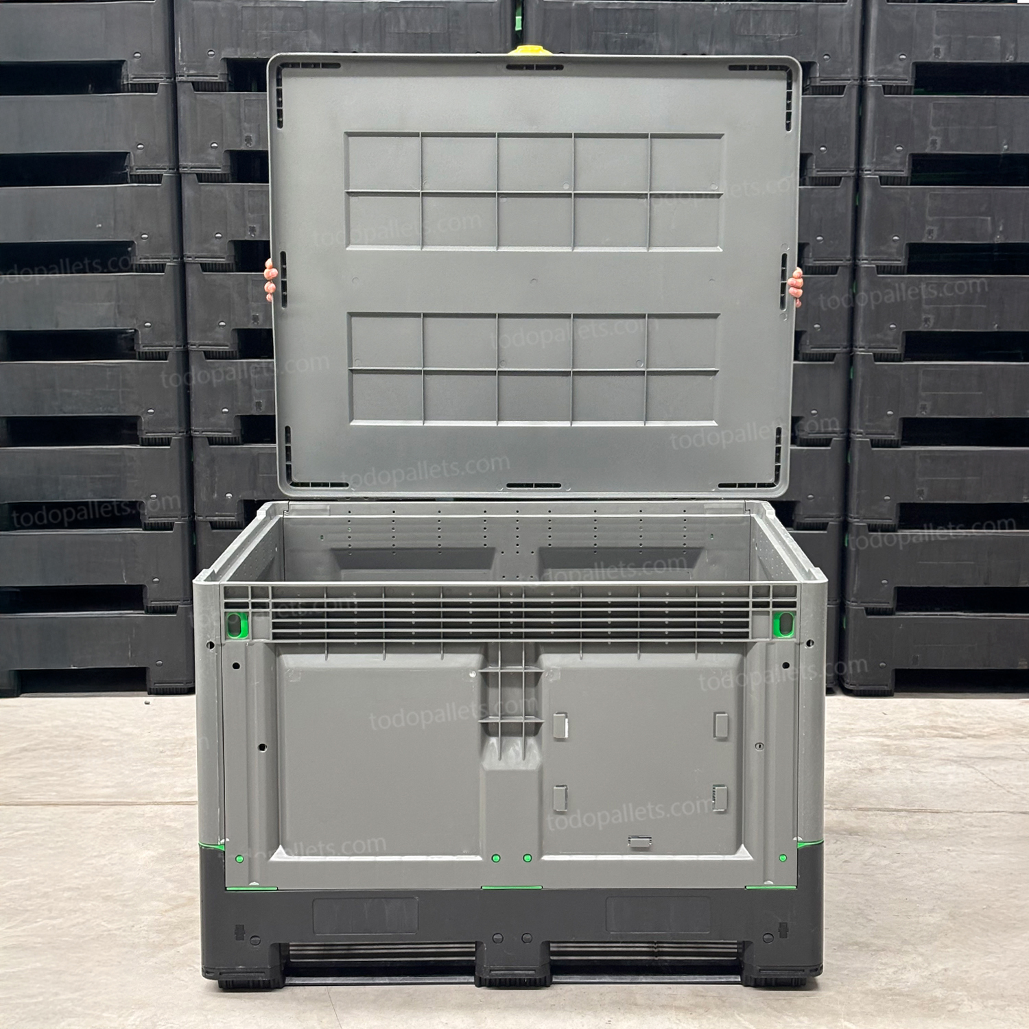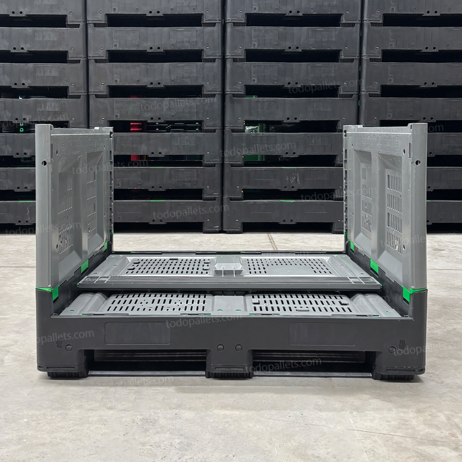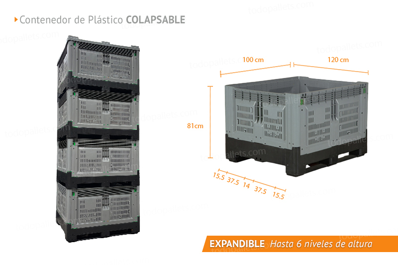 Su diseño colapsable permite reducir el espacio de almacenamiento en un 80%, haciéndolo ideal para diversas industrias y condiciones logísticas.