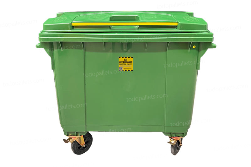 - 1 contenedor verde con 4 ruedas