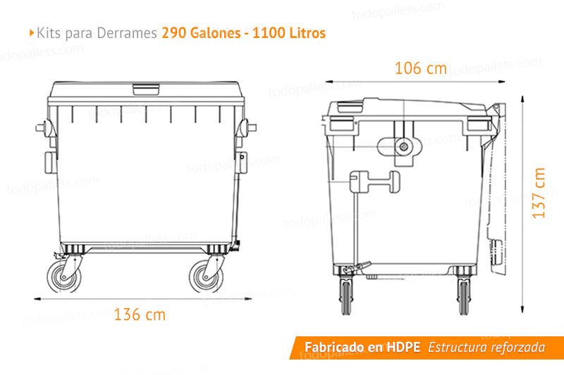 Capacidad del contenedor: 1,100 litros, 290 galones.