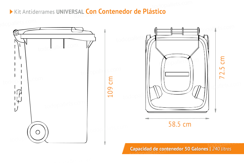 Capacidad del contenedor: 240 litros / 65 Galones