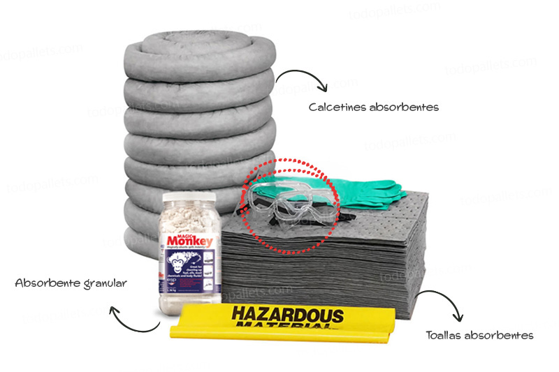 Con todos los materiales necesarios, el kit asegura una respuesta rápida, eficiente y en cumplimiento con las regulaciones vigentes, manteniendo así su lugar de trabajo seguro y limpio.