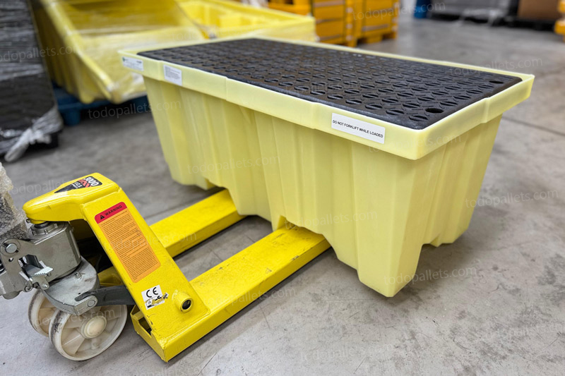 - Tarima para contención de derrames, resistente a químicos altamente corrosivos.